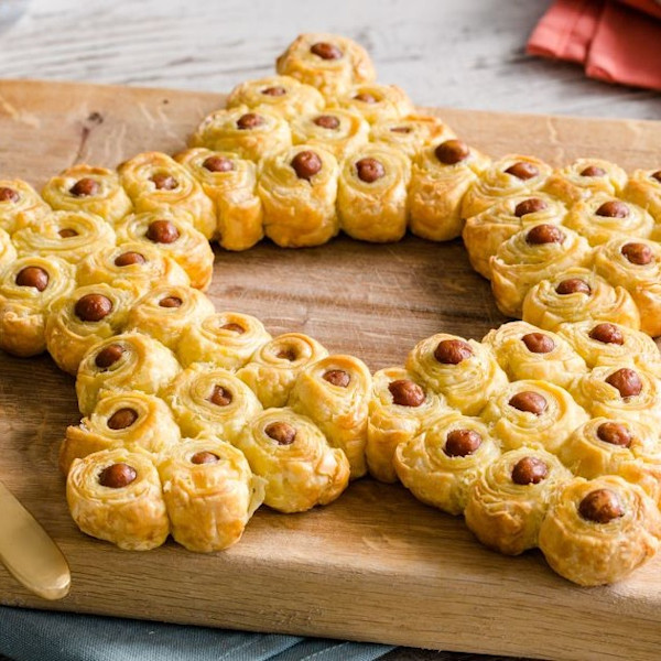 Een kerstlunch op school? Maak deze prachtige bladerdeegster met knakworstjes. Ook leuk om samen te bakken met kinderen. Succes gegarandeerd!